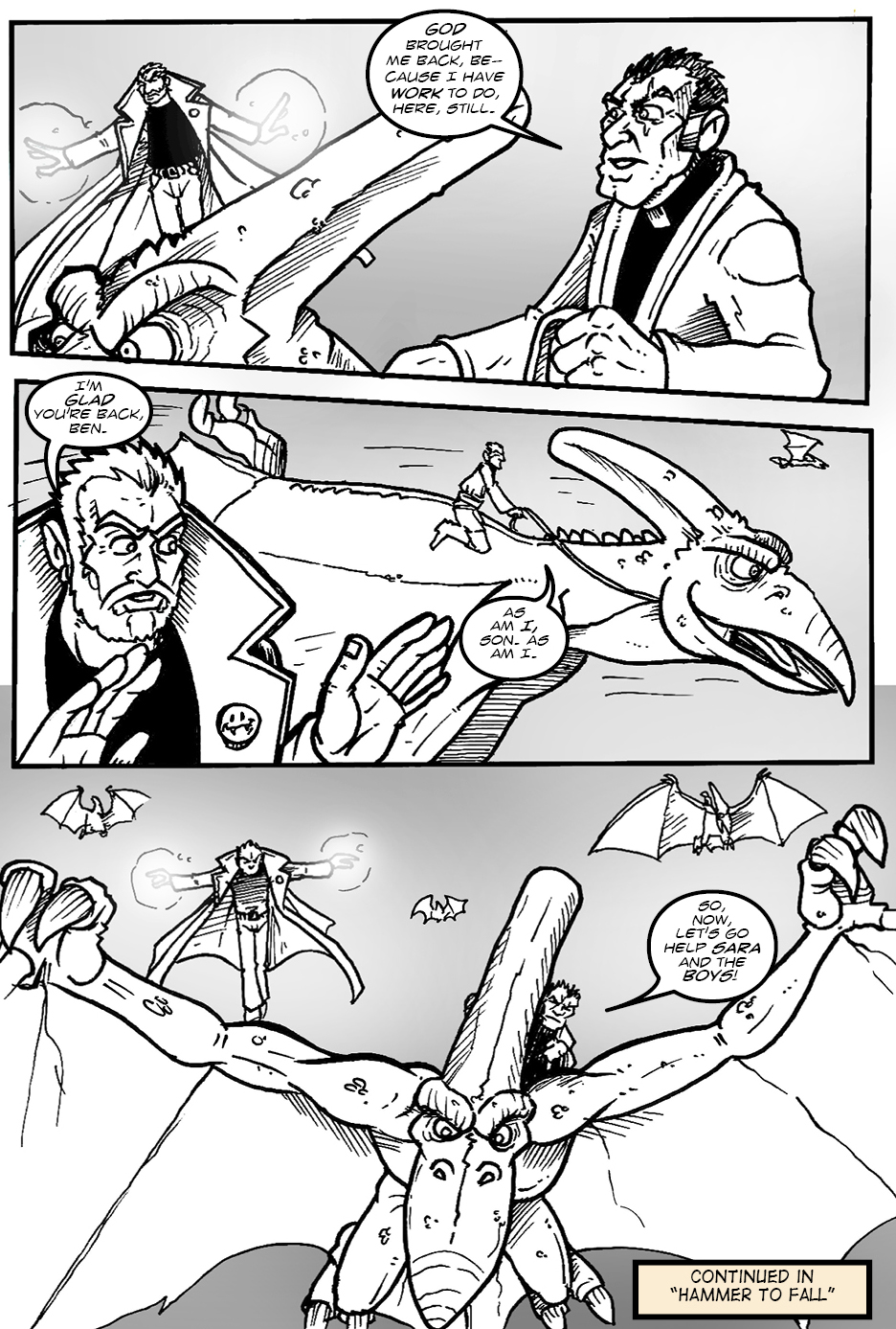Father Ben Billings returns to the land of the living and fights bad guys! http://www.phinmagic.net/phineus/?comic=living-saint-cover-4