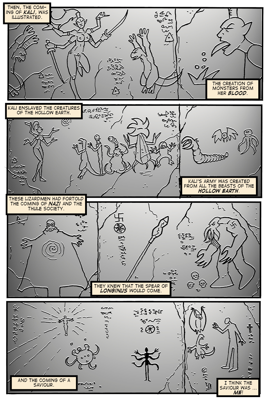 At the end of September, we see the end of the current issue of Hammer to Fall and the bonus story, Nameless City for Patrons. Starting in October will be the final chapter of the Hollow Earth, a bonus story about The Liberty Lads (GD7‘s predecessor) fighting against the Thule Society in the temple of Sub Niggarath., last seen in the Kali Saga.