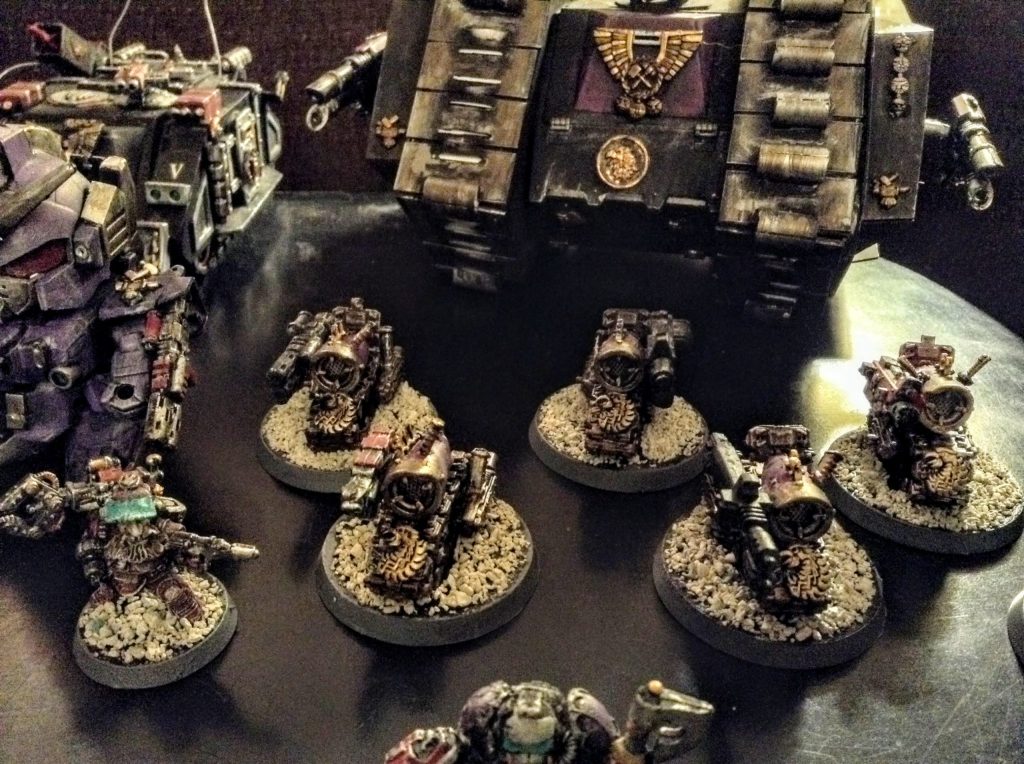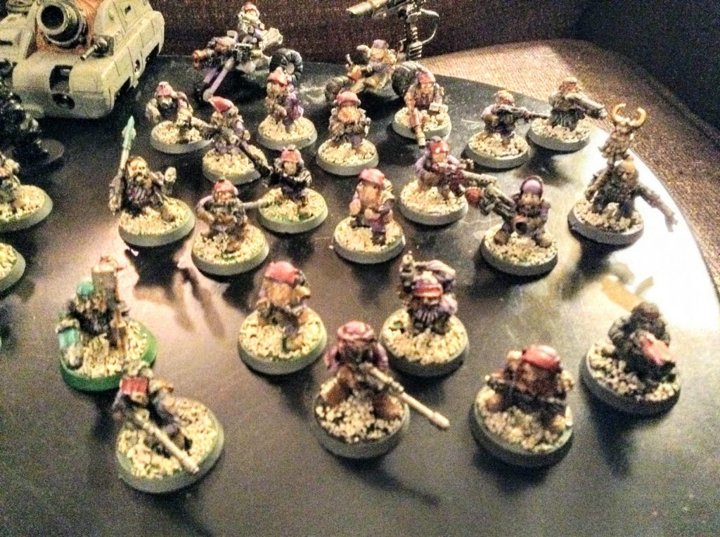 Some updated pics of my Squat army. Still far from done, but looking pretty good. Lots of little conversions in this force. I am especially fond of the 5 mobile gun units that act as Tarantulas. Plus the two custom scratch built Landraiders.