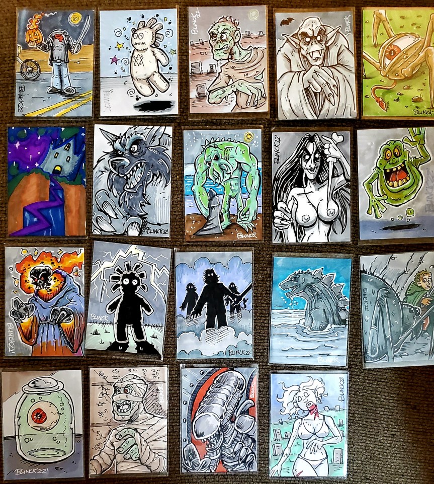 I’m conditioning the drawing thumb by doing sketch cards for Draw or Die’s Promptober. They’re fun, they’re getting me ready for the con in 2 weeks and it’s loosening up my hand. Sorry for the lack of pages.