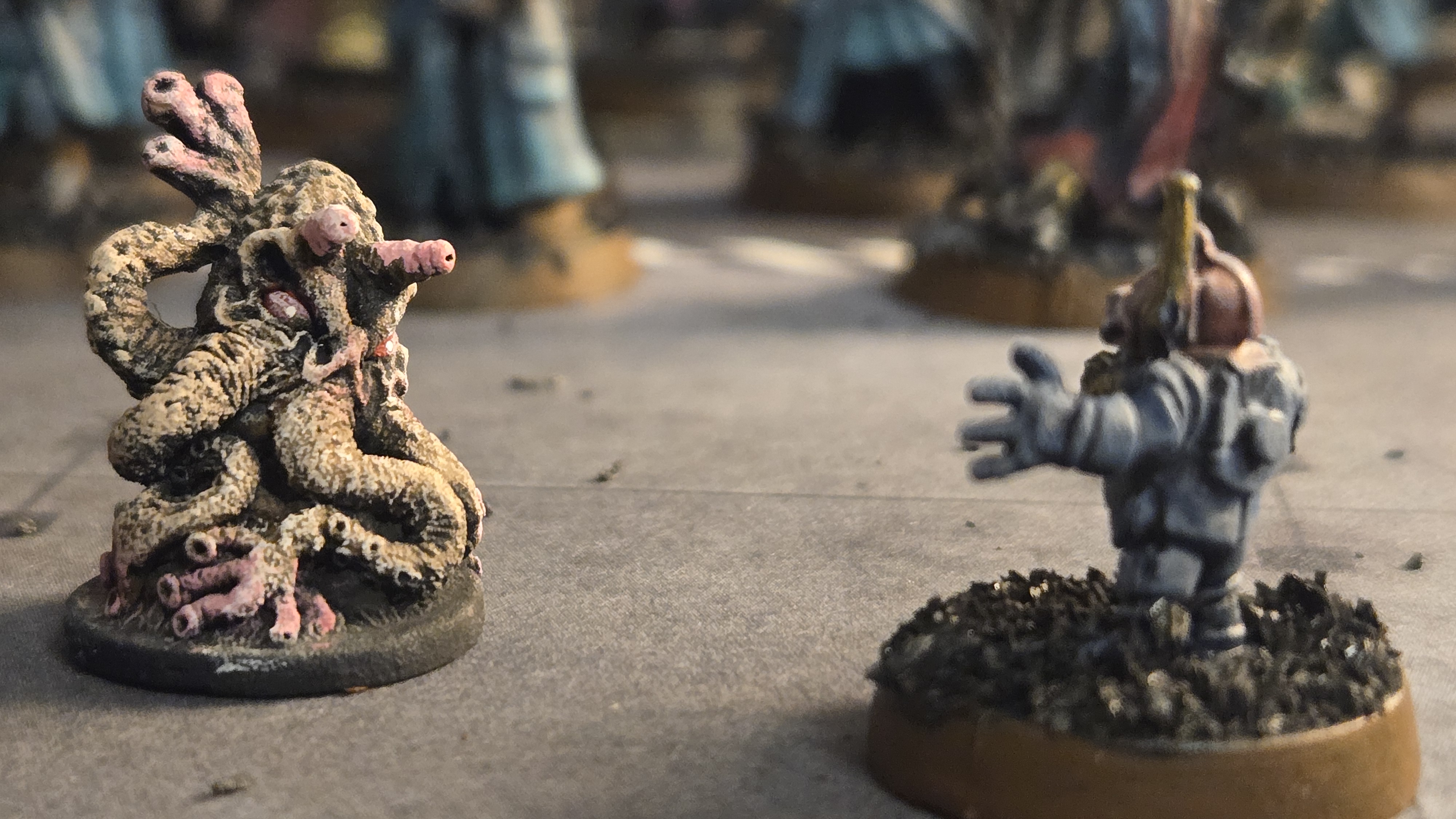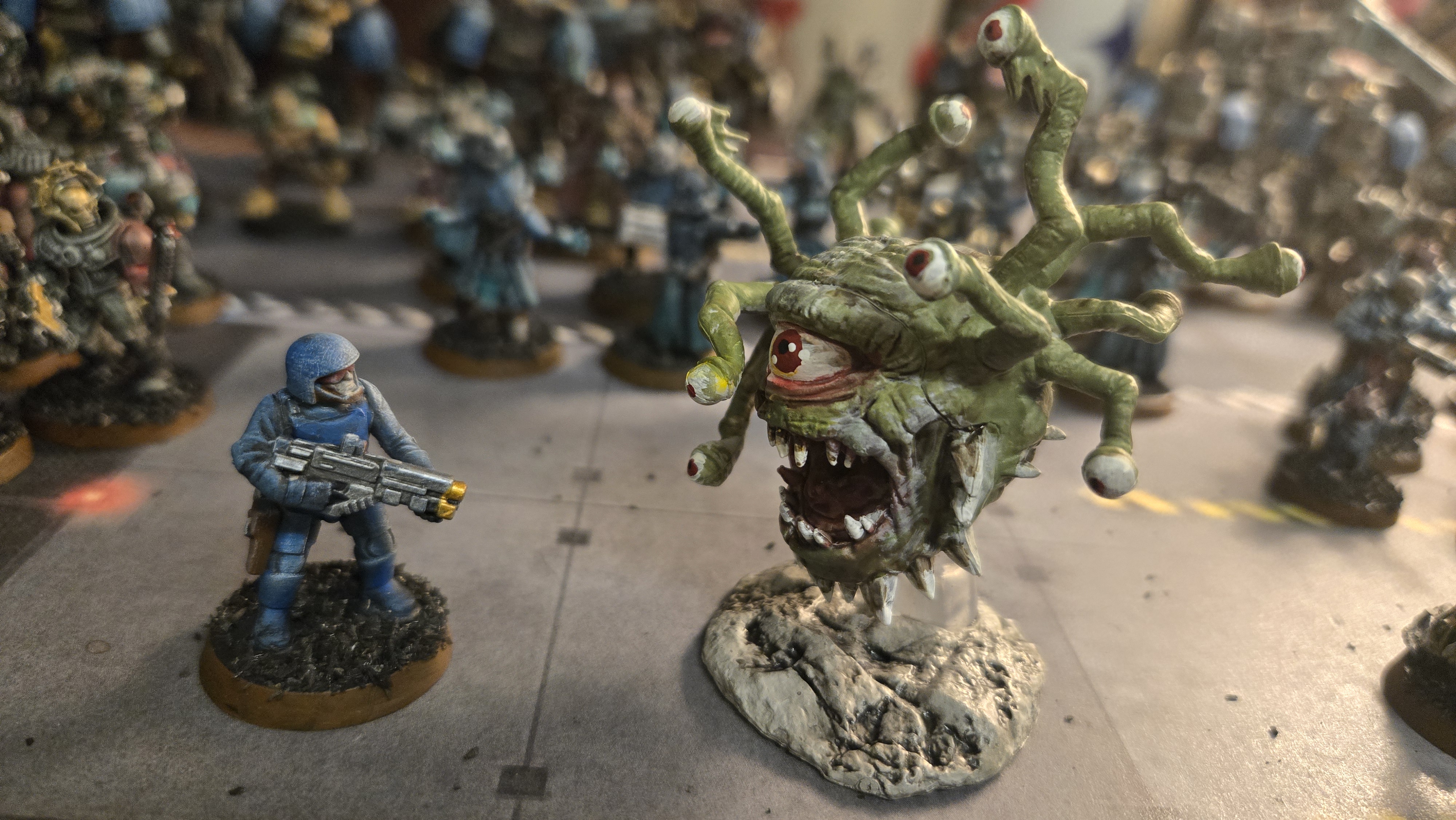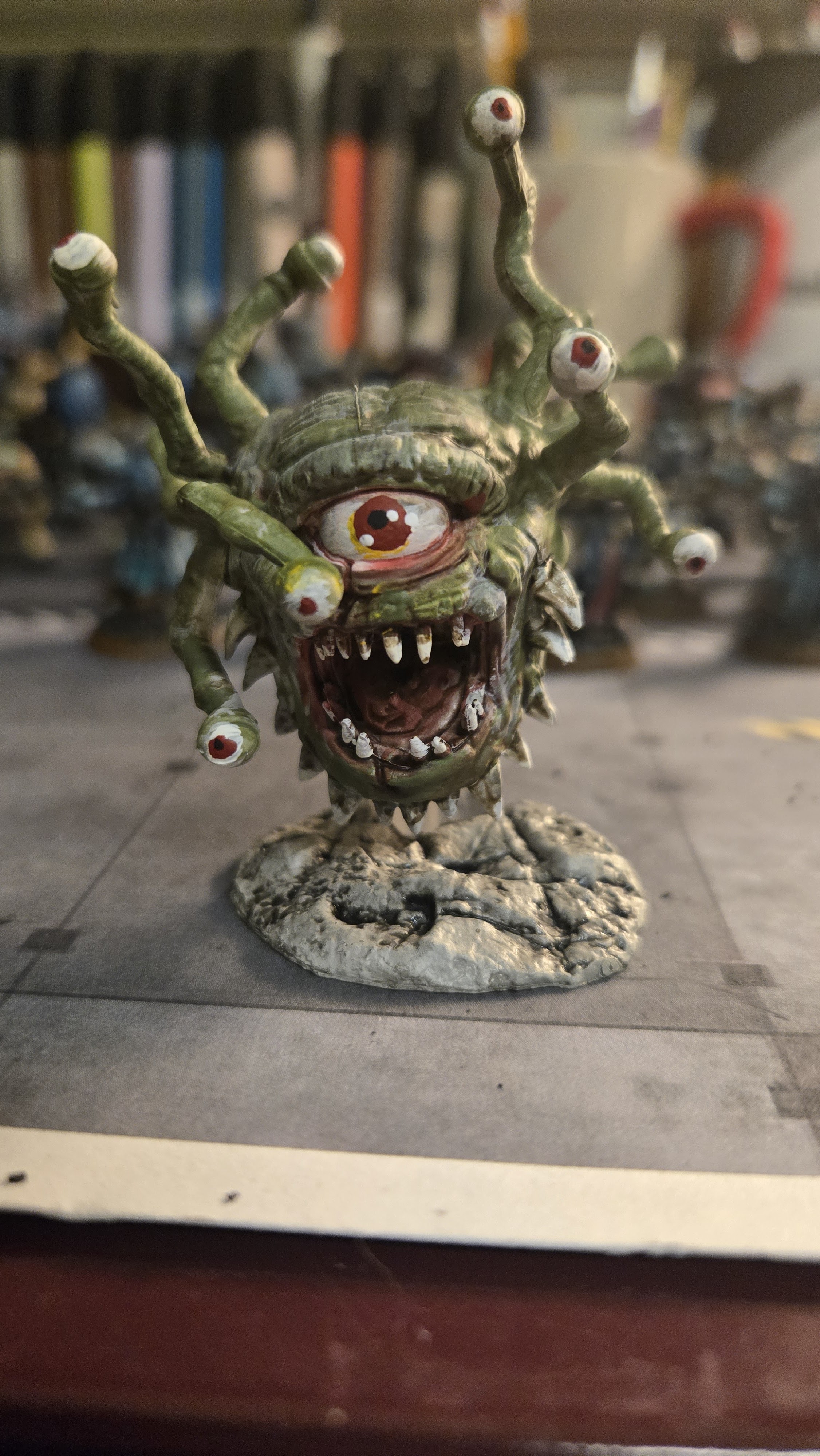 While I try and figure out what I am doing with my comics, I am continuing to paint through my pile of shame. I got some of the newer D&D minis and painted up a Beholder and a Grell (both seen here accosting my Imperial Navy).
