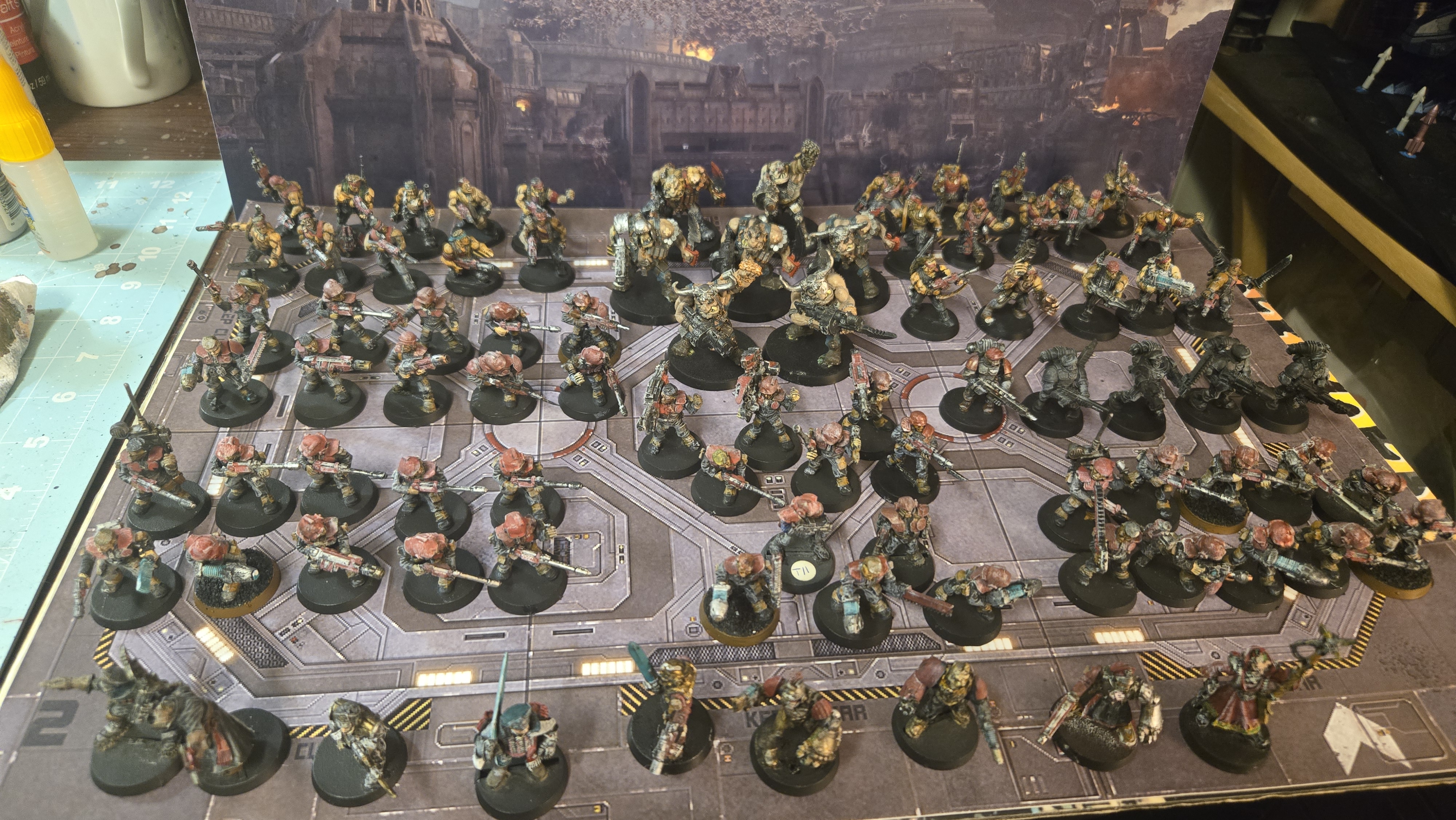 I have most of my Rogue Trader Imperial Guard done. I just need to base them all. Here is all my infantry, save my Storm Troopers, which I’ve kit-bashed to look like the 2nd ed. versions with the berets. I also have a lot of tanks.