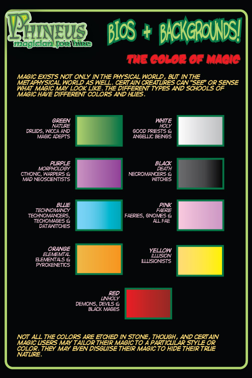 I like to use color to indicate a type of magic that is used. The colors equate to a school of magic. It’s an amalgamation of Matt Wagner’s Mage and lightsaber color from Star Wars.