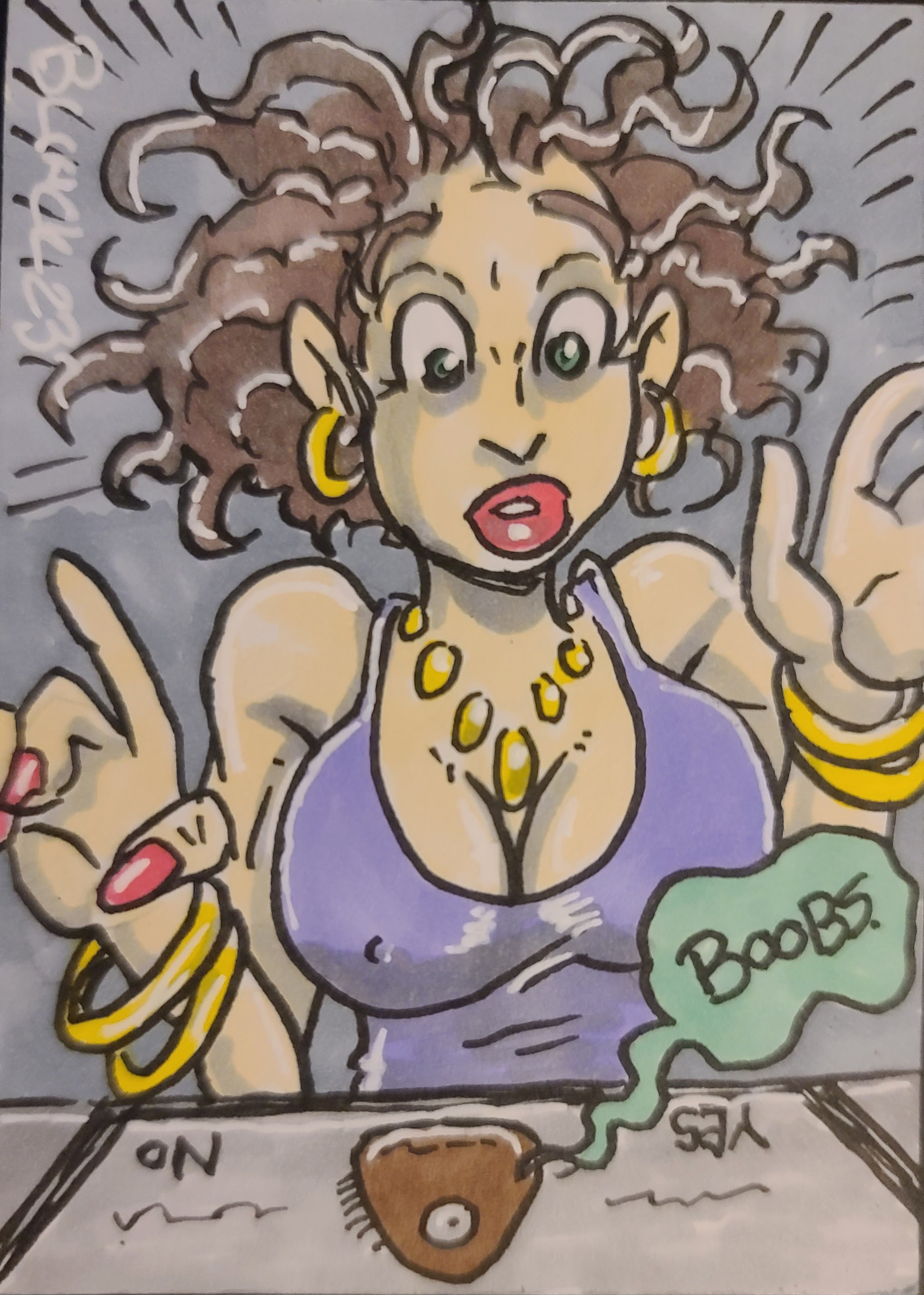 Here are sketch cards I did a while back for Cult Stuff cards. You know, drawing boobs and stuff.