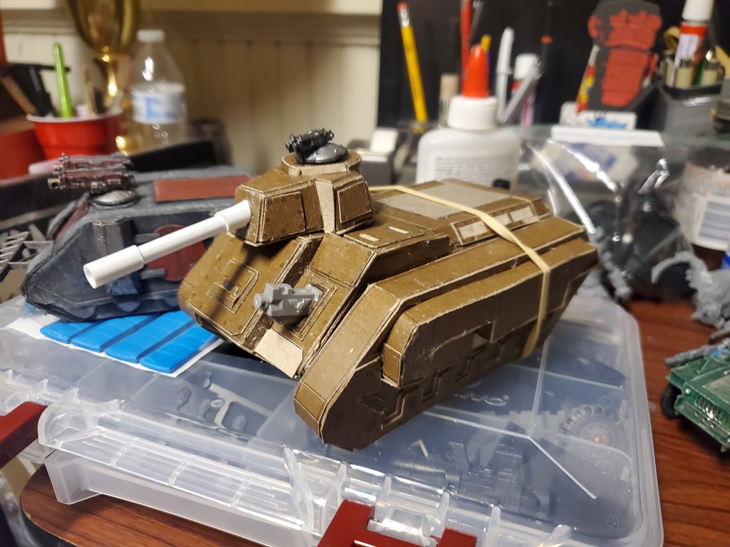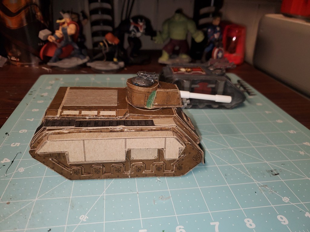 And I can’t just buy a tank kit and build it, I need to build it from scratch with cardboard, because, reasons. Well, the reasons are it’s more challenging, more fun (to me) and costs next to nothing.