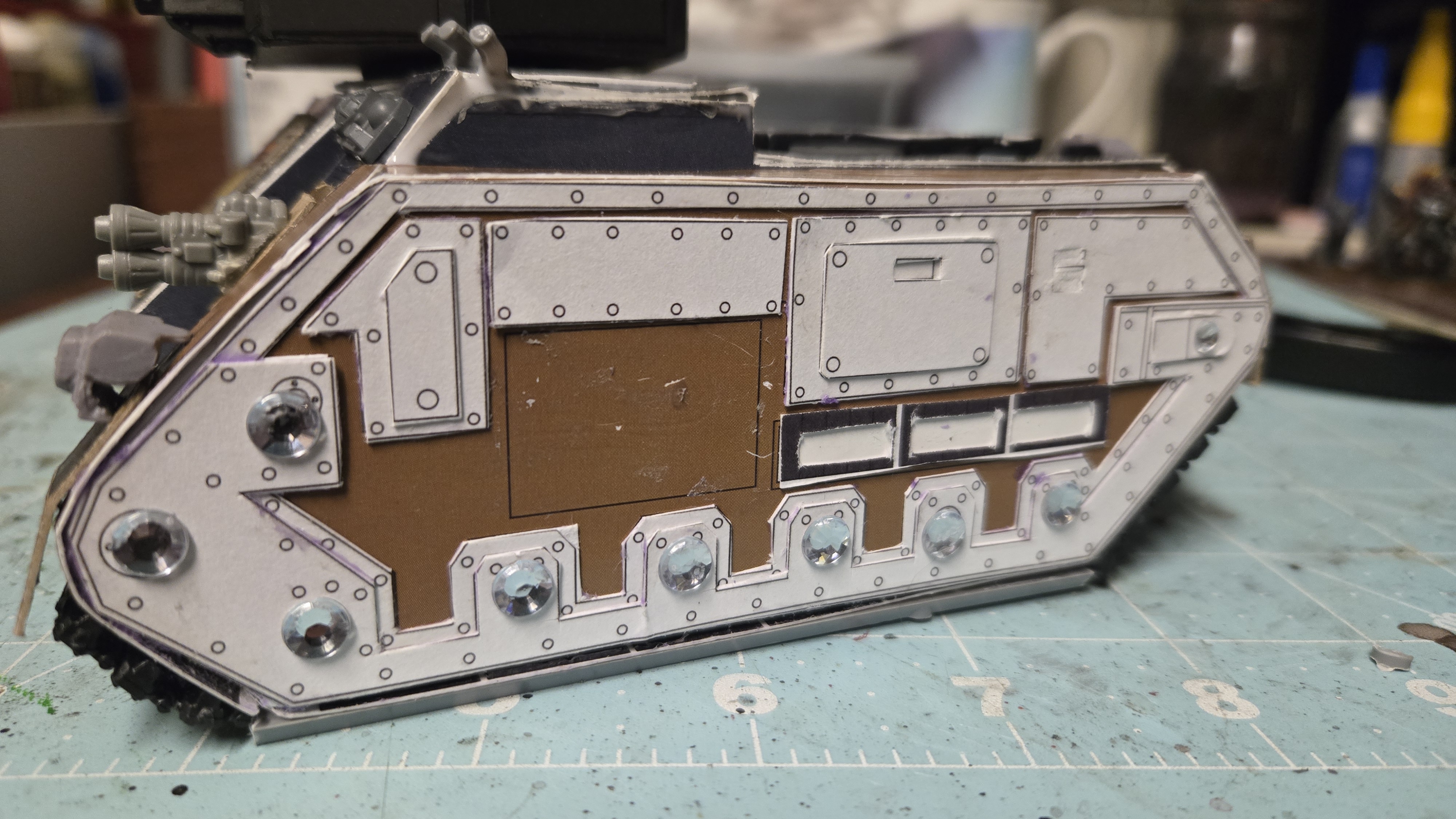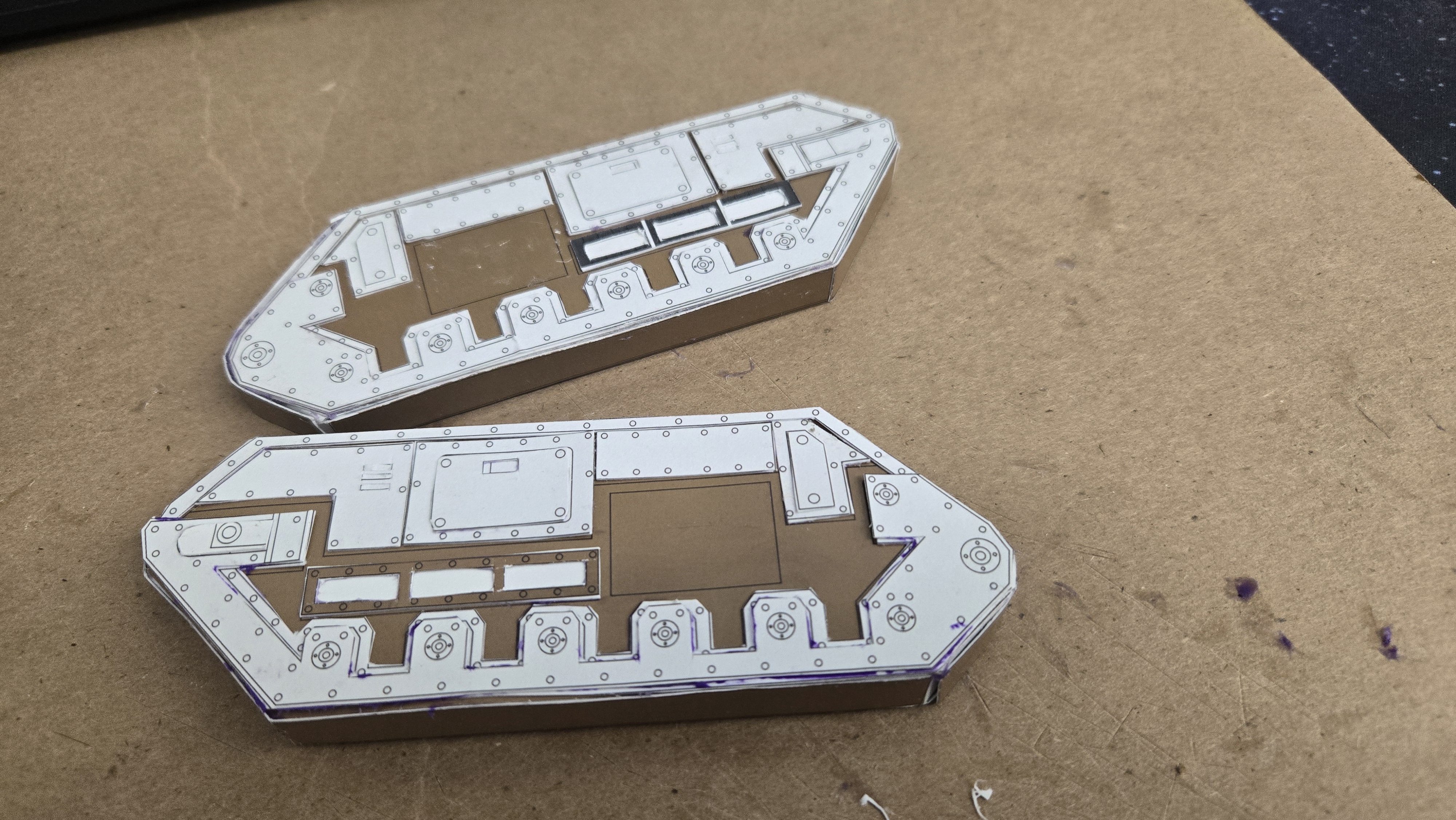 I’ve found some templates online and have fankensteined them together, with glue and spare bits. I’m quite happy with the process. I was able to print on chipboard as a guide, but all that will get painted over.