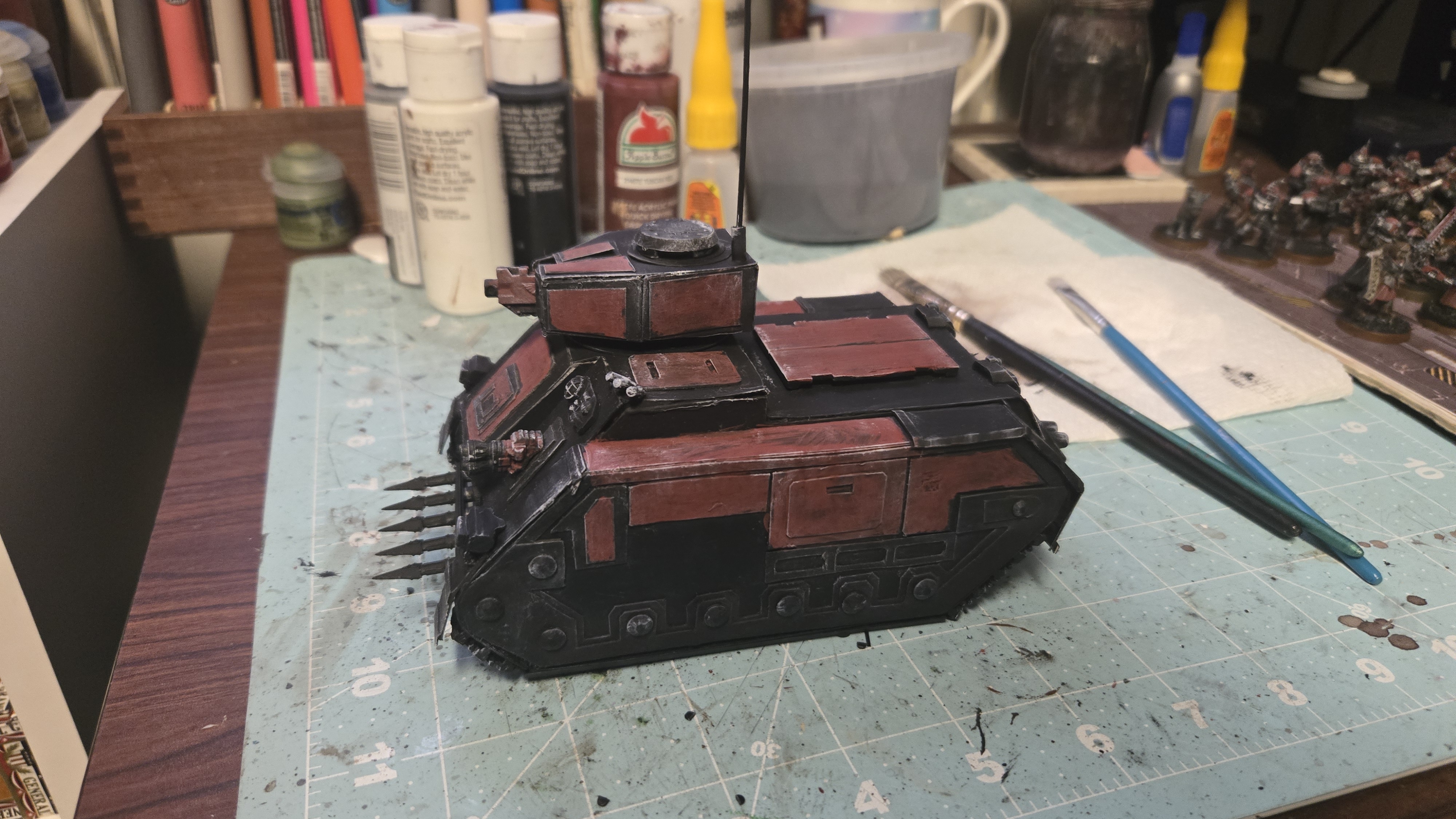 I aim to make a few of these to act as rhinos for my inquisition, whirlwind for my Spacemarines and chimera proxies for my Imperial Guard (part because I love the rhino chassis and part because I hate the chimera chassis & because rhinos are infinitely easier to build than chimera).