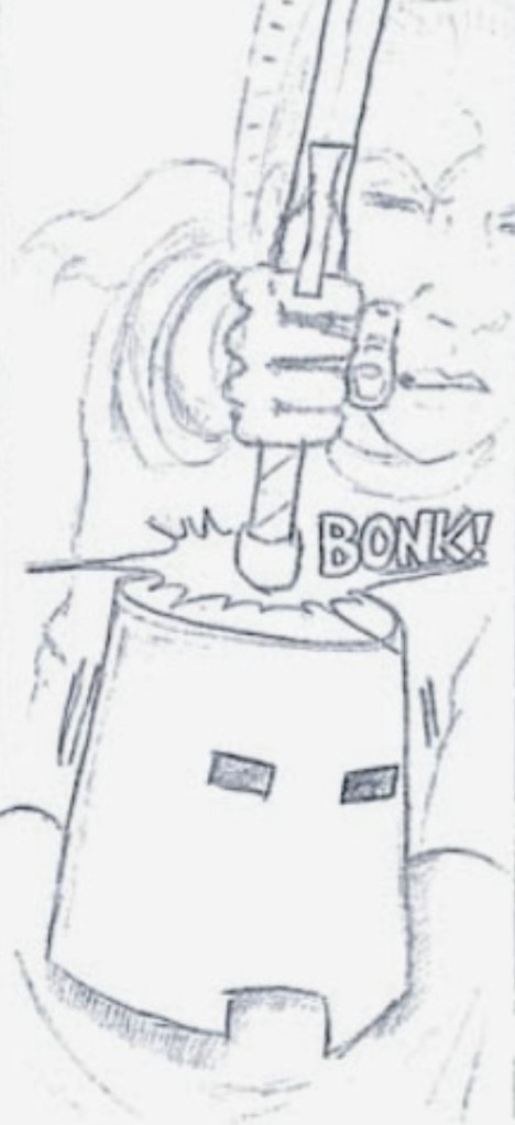 These were some old sketches. The first was in preparation for Phineus:2013, which was later renamed The Kali Saga. The second is designs for GD7 (from 2007 & 1940) for the Brian Babyok scripted, The Great Jaguar Paw. We’ve seen the modern GD7 many times in Phineus, and the 1940 incarnation in the bonus story” How We Won the War”, available to Patreon subscribers.