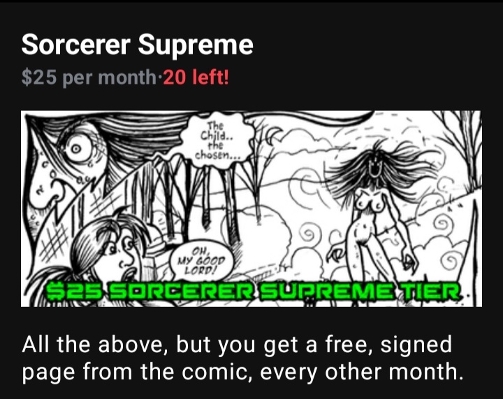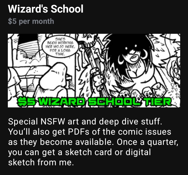 New free comics go live every Monday around midnight. These comics are posted, along with progress shots, on my Patreon $1 tier, weeks in advance. The current storyline has 2 chapters to conclude, before “Barcrawl of the Damned” & “Boy Wizard” resume.