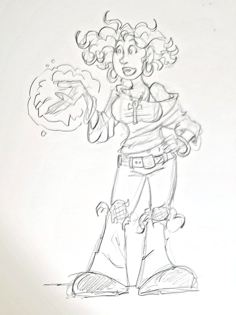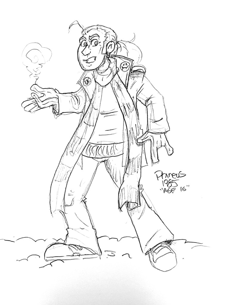 This may be the earliest pic of Rugnar, with his party for a medieval campaign of Backwaters of Mysticism run by game creator John Burris. I ended up porting Rugs to modern times and my Phineus comics. In this setting he was a priest of Thor and his lightning came from Clerical magics.