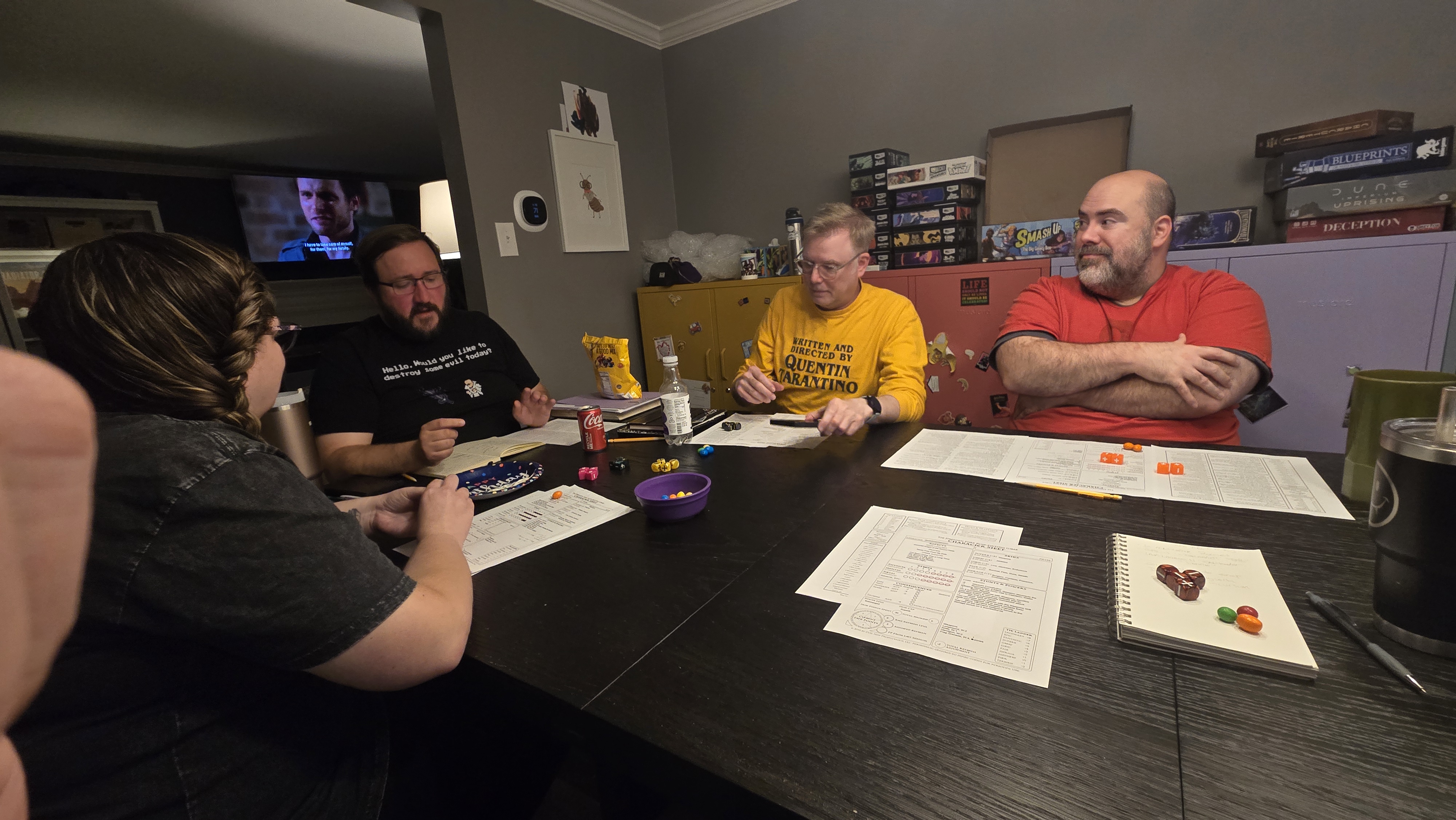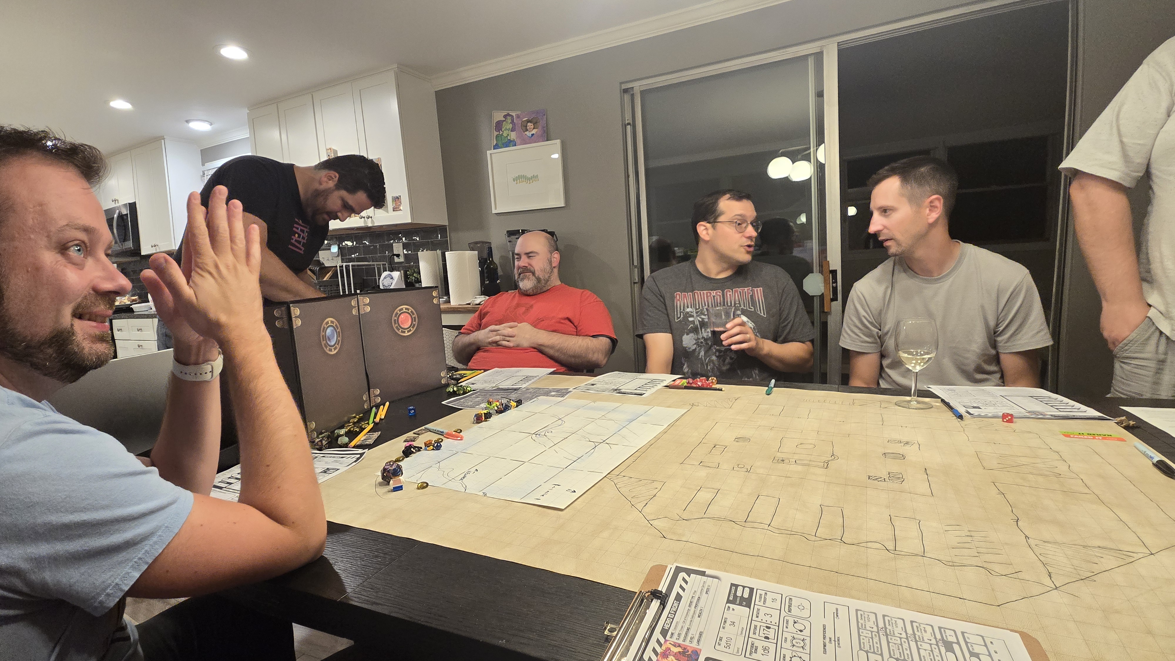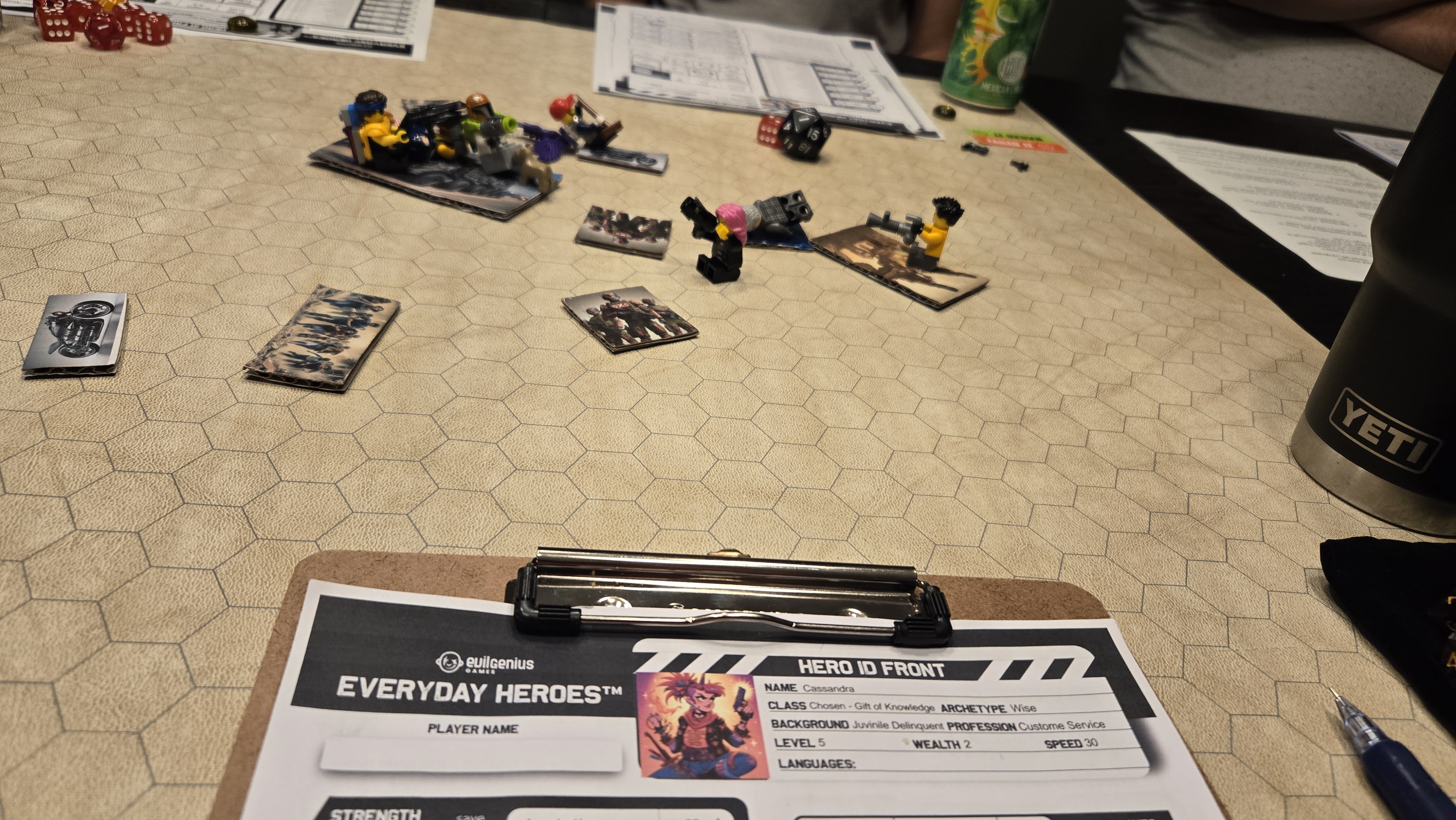 We RPG’d “Everyday Heroes” with Justin. Great fun, 1980’s stuck in an alternate dimension. Chris ran us through Dresden Files as a Supernatural Strikeforce for the allies. Also fun.