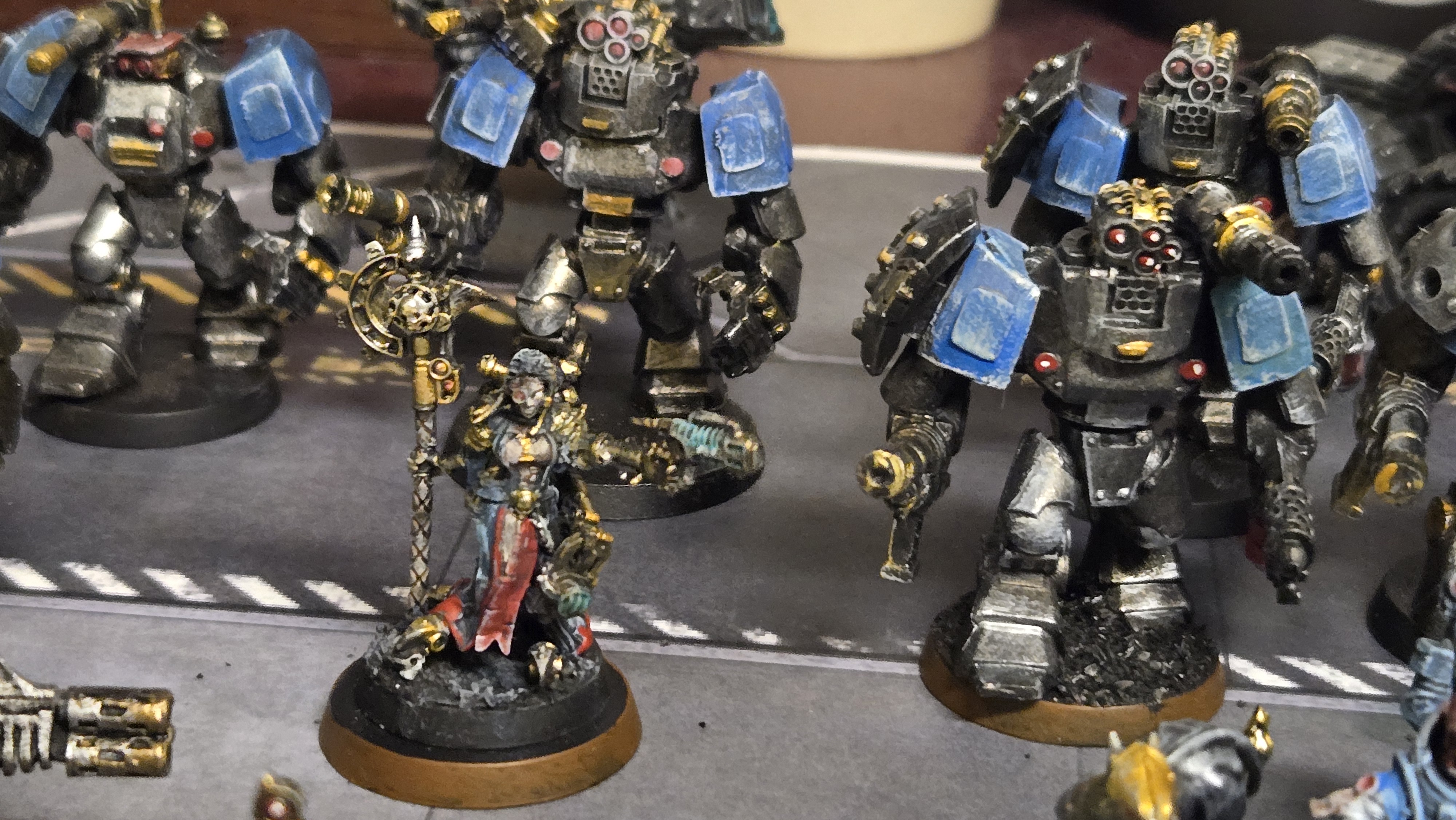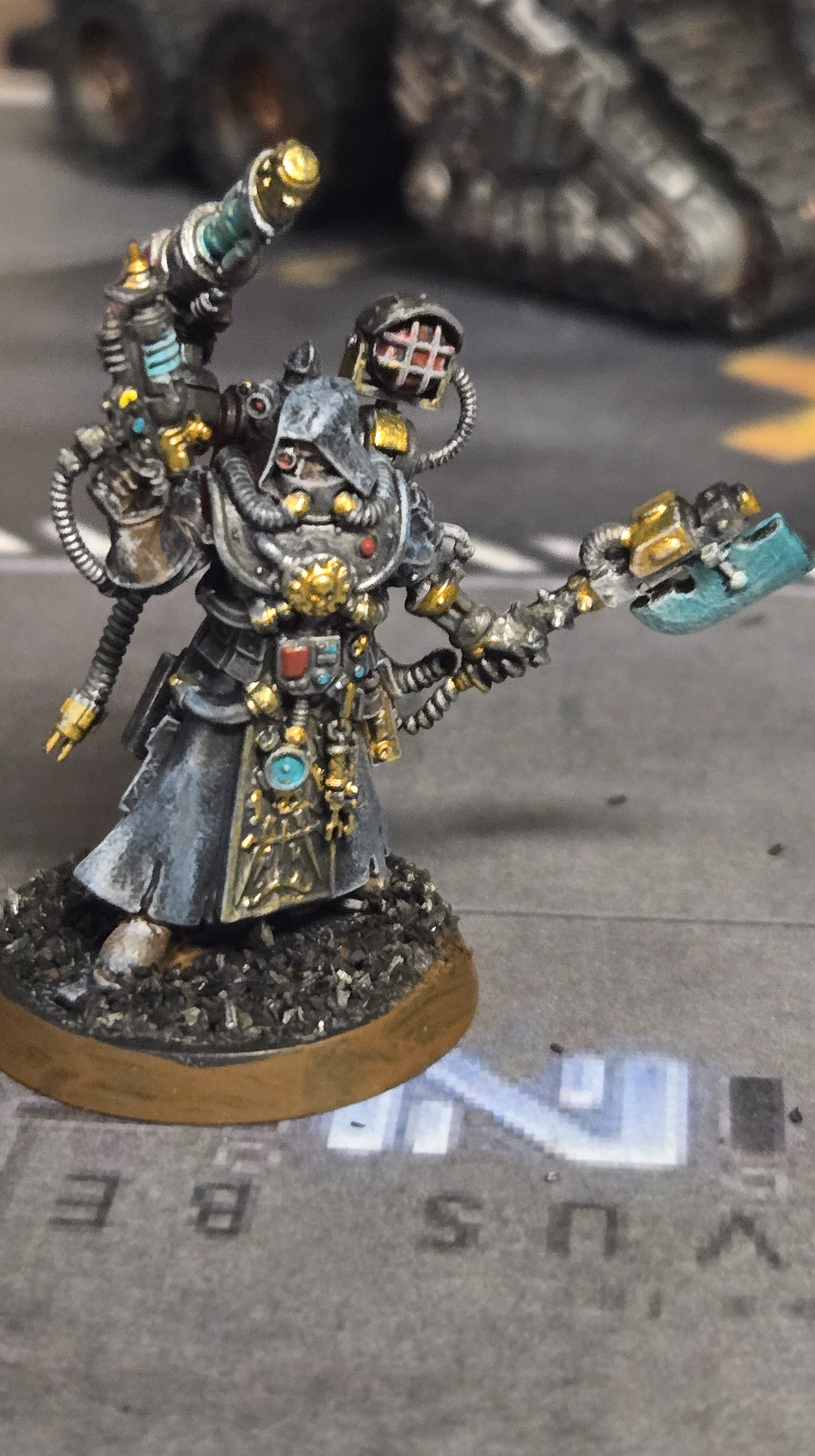 Here is my version of a Warhammer 40K Admech (with Imperial Agents). My Inquisitor is a Time Lord of the Ordo Chronos, allied with Admech, searching for lost Time Travel Tech.