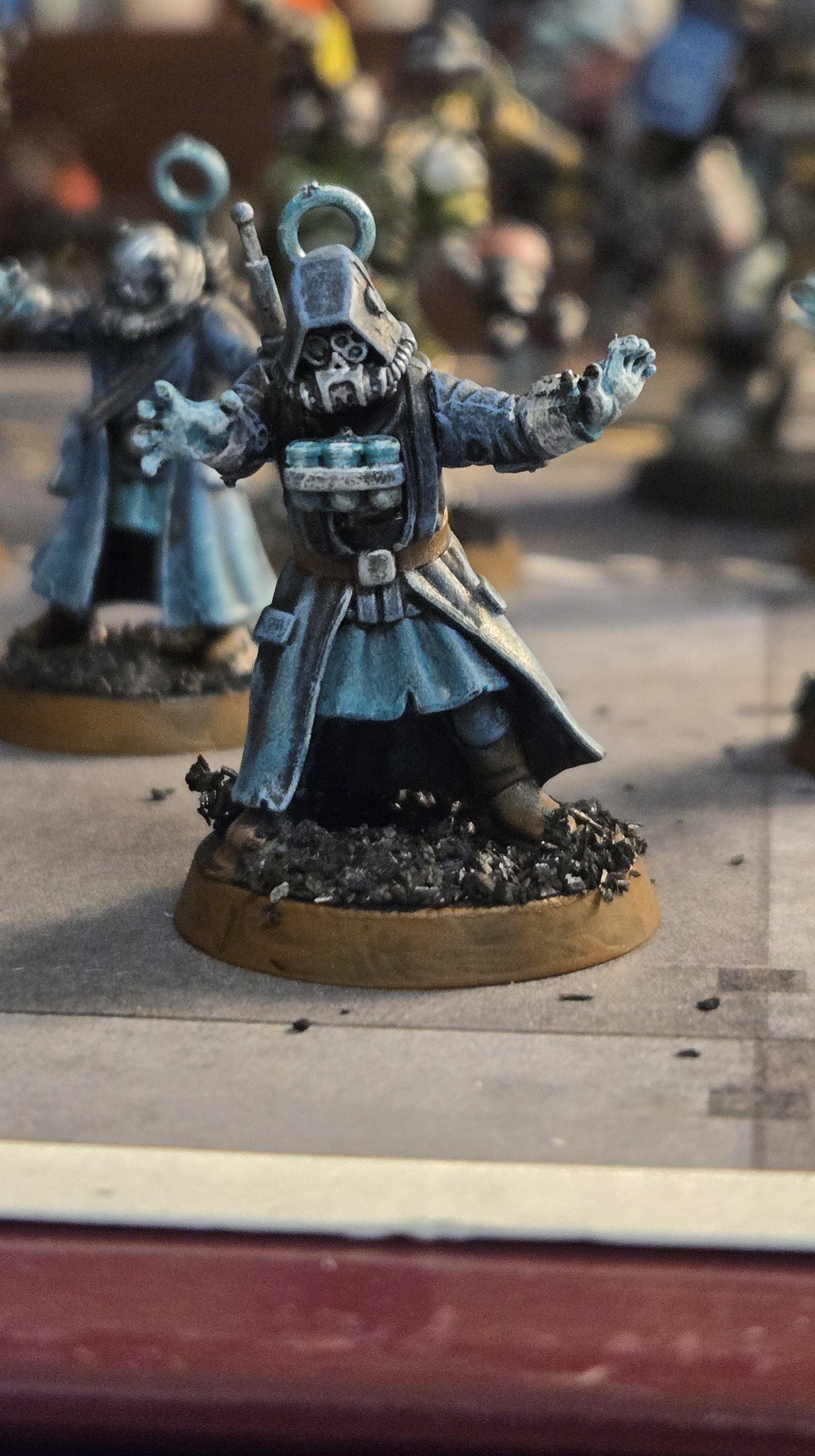 I put together Electro Priests from Start Grave and Frost Grave minis, with Admech bits. I kitbashed them as I really dislike the GW minis. These are fun and a bit creepy. I have long wanted these guys since 2nd ed, and I finally have some!