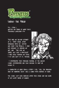 Phineus : Magician for Hire is the brainchild of creator Barry Linck. Phineus was created in 1987, of then a high school senior after reading too much of Matt Wagner's "Mage", too much Dungeon's and Dragon's and watching too much of John Carpenter's "Big trouble in LittleChina". Over the interviening years Phineus changed from angellic savior, to reluctant hero, to art student who finds he is a mage, until, in 1991, for a comic class at Edinboro University, he became part of a Husband and Wife paranormal investigations team, with Phineus' sidekick and wife Sara. Barry produced and self published from 1993 to the present 33 comics with our erstwhile heroes, garnering a small but rabid fan following. View all posts by phinmagic