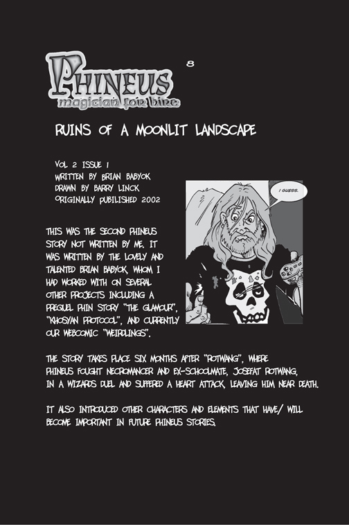 Phineus : Magician for Hire is the brainchild of creator Barry Linck. Phineus was created in 1987, of then a high school senior after reading too much of Matt Wagner's "Mage", too much Dungeon's and Dragon's and watching too much of John Carpenter's "Big trouble in LittleChina". Over the interviening years Phineus changed from angellic savior, to reluctant hero, to art student who finds he is a mage, until, in 1991, for a comic class at Edinboro University, he became part of a Husband and Wife paranormal investigations team, with Phineus' sidekick and wife Sara. Barry produced and self published from 1993 to the present 33 comics with our erstwhile heroes, garnering a small but rabid fan following. View all posts by phinmagic