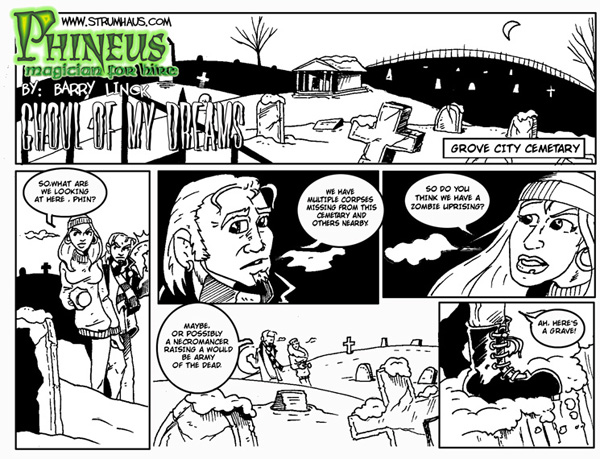 Phineus : Magician for Hire is the brainchild of creator Barry Linck. Phineus was created in 1987, of then a high school senior after reading too much of Matt Wagner's "Mage", too much Dungeon's and Dragon's and watching too much of John Carpenter's "Big trouble in LittleChina". Over the interviening years Phineus changed from angellic savior, to reluctant hero, to art student who finds he is a mage, until, in 1991, for a comic class at Edinboro University, he became part of a Husband and Wife paranormal investigations team, with Phineus' sidekick and wife Sara. Barry produced and self published from 1993 to the present 33 comics with our erstwhile heroes, garnering a small but rabid fan following. View all posts by phinmagic