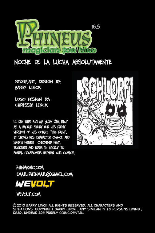 Phineus : Magician for Hire is the brainchild of creator Barry Linck. Phineus was created in 1987, of then a high school senior after reading too much of Matt Wagner's "Mage", too much Dungeon's and Dragon's and watching too much of John Carpenter's "Big trouble in LittleChina". Over the interviening years Phineus changed from angellic savior, to reluctant hero, to art student who finds he is a mage, until, in 1991, for a comic class at Edinboro University, he became part of a Husband and Wife paranormal investigations team, with Phineus' sidekick and wife Sara. Barry produced and self published from 1993 to the present 33 comics with our erstwhile heroes, garnering a small but rabid fan following. View all posts by phinmagic