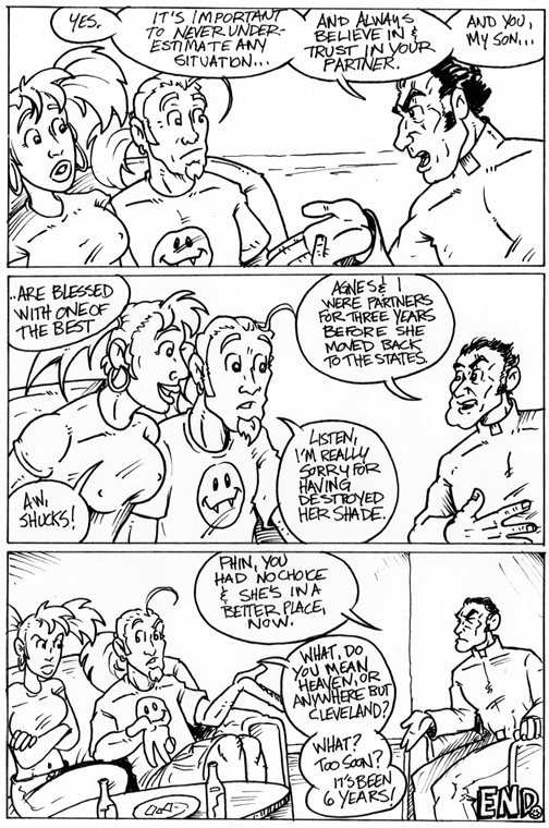 Phineus : Magician for Hire is the brainchild of creator Barry Linck. Phineus was created in 1987, of then a high school senior after reading too much of Matt Wagner's "Mage", too much Dungeon's and Dragon's and watching too much of John Carpenter's "Big trouble in LittleChina". Over the interviening years Phineus changed from angellic savior, to reluctant hero, to art student who finds he is a mage, until, in 1991, for a comic class at Edinboro University, he became part of a Husband and Wife paranormal investigations team, with Phineus' sidekick and wife Sara. Barry produced and self published from 1993 to the present 33 comics with our erstwhile heroes, garnering a small but rabid fan following. View all posts by phinmagic