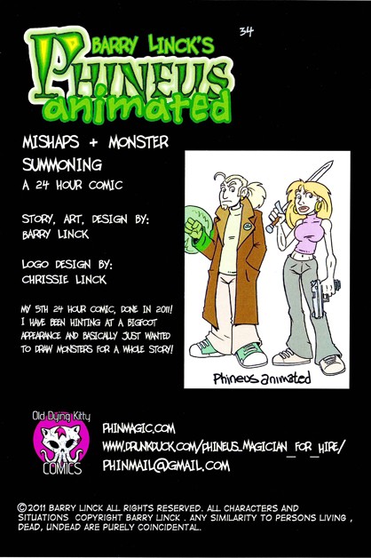 Phineus : Magician for Hire is the brainchild of creator Barry Linck. Phineus was created in 1987, of then a high school senior after reading too much of Matt Wagner's "Mage", too much Dungeon's and Dragon's and watching too much of John Carpenter's "Big trouble in LittleChina". Over the interviening years Phineus changed from angellic savior, to reluctant hero, to art student who finds he is a mage, until, in 1991, for a comic class at Edinboro University, he became part of a Husband and Wife paranormal investigations team, with Phineus' sidekick and wife Sara. Barry produced and self published from 1993 to the present 33 comics with our erstwhile heroes, garnering a small but rabid fan following. View all posts by phinmagic