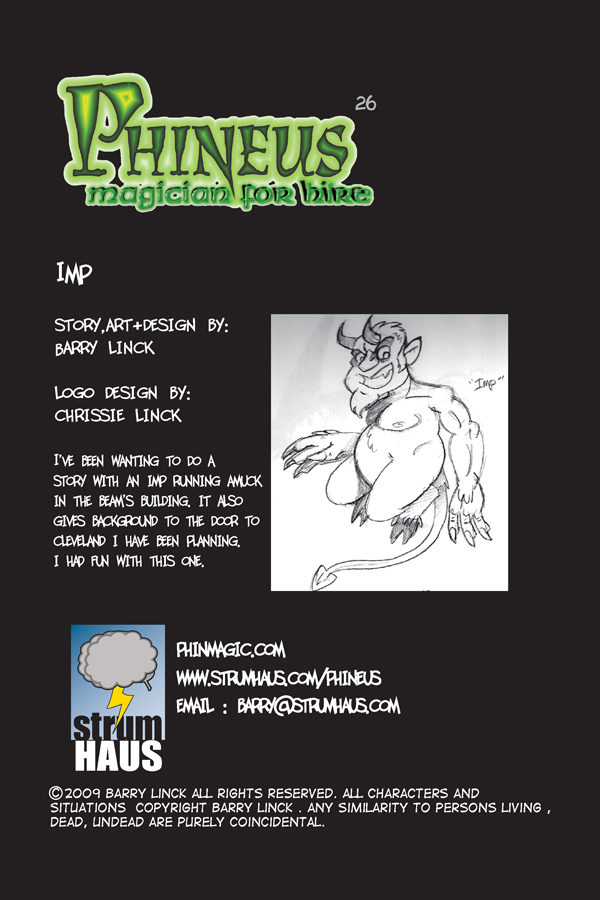 Phineus : Magician for Hire is the brainchild of creator Barry Linck. Phineus was created in 1987, of then a high school senior after reading too much of Matt Wagner's "Mage", too much Dungeon's and Dragon's and watching too much of John Carpenter's "Big trouble in LittleChina". Over the interviening years Phineus changed from angellic savior, to reluctant hero, to art student who finds he is a mage, until, in 1991, for a comic class at Edinboro University, he became part of a Husband and Wife paranormal investigations team, with Phineus' sidekick and wife Sara. Barry produced and self published from 1993 to the present 33 comics with our erstwhile heroes, garnering a small but rabid fan following. View all posts by phinmagic
