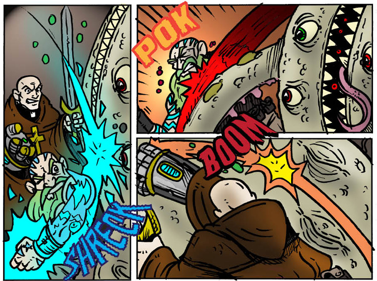 Phineus : Magician for Hire is the brainchild of creator Barry Linck. Phineus was created in 1987, of then a high school senior after reading too much of Matt Wagner's "Mage", too much Dungeon's and Dragon's and watching too much of John Carpenter's "Big trouble in LittleChina". Over the interviening years Phineus changed from angellic savior, to reluctant hero, to art student who finds he is a mage, until, in 1991, for a comic class at Edinboro University, he became part of a Husband and Wife paranormal investigations team, with Phineus' sidekick and wife Sara. Barry produced and self published from 1993 to the present 33 comics with our erstwhile heroes, garnering a small but rabid fan following. View all posts by phinmagic