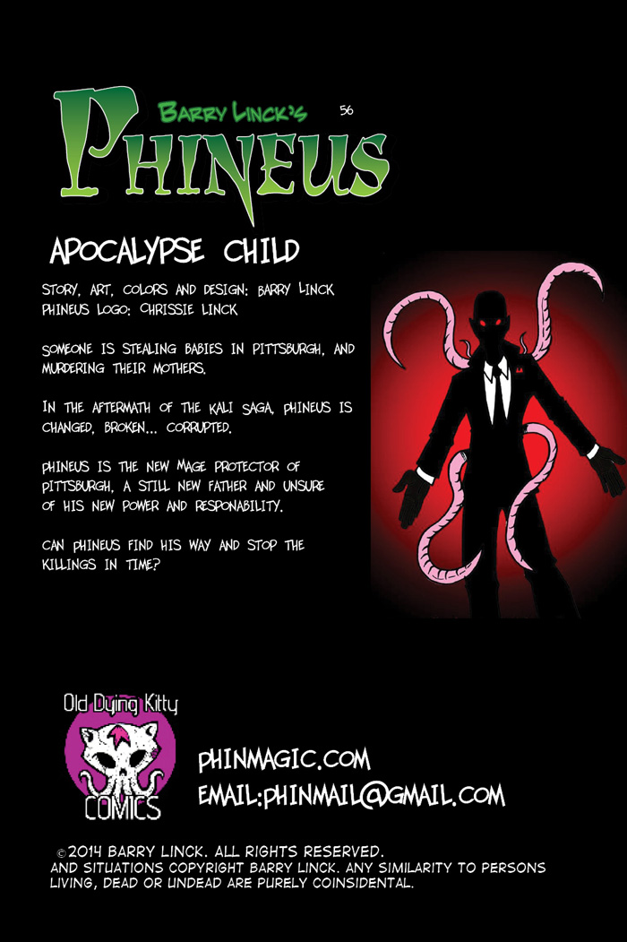 Phineus : Magician for Hire is the brainchild of creator Barry Linck. Phineus was created in 1987, of then a high school senior after reading too much of Matt Wagner's "Mage", too much Dungeon's and Dragon's and watching too much of John Carpenter's "Big trouble in LittleChina". Over the interviening years Phineus changed from angellic savior, to reluctant hero, to art student who finds he is a mage, until, in 1991, for a comic class at Edinboro University, he became part of a Husband and Wife paranormal investigations team, with Phineus' sidekick and wife Sara. Barry produced and self published from 1993 to the present 33 comics with our erstwhile heroes, garnering a small but rabid fan following. View all posts by phinmagic