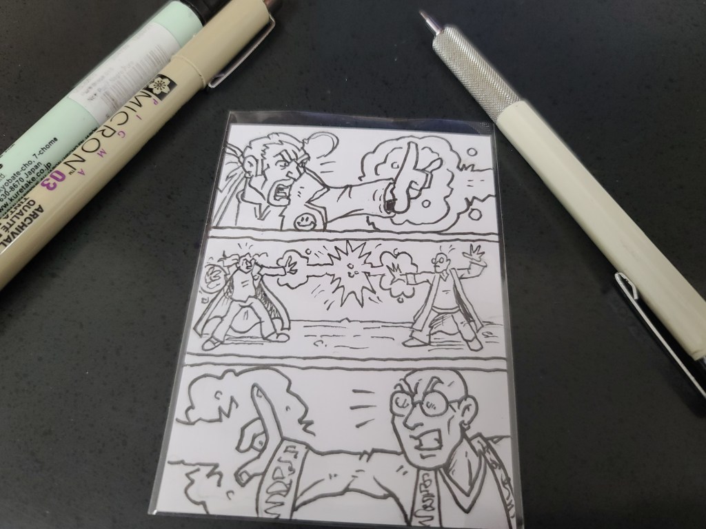 I got an idea off insta Nicolas Giacondino to do sketch card comics. Tiny little original comicbook pages! Fun stuff!