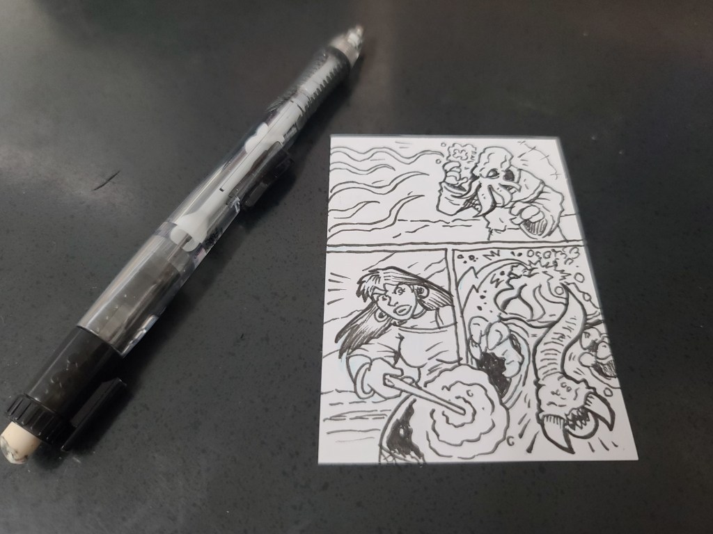 I may do a series of these, mini mini comics. They’ll be sold with my other sketch cards at conventions and shows.