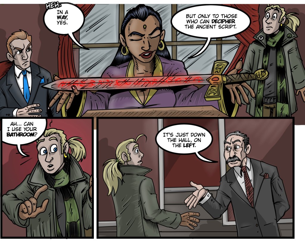 When ya gotta go, ya gotta go, despite important exposition going on!