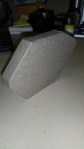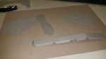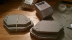 I printed the template onto letter sized pieces of chipboard on one of the big printers at work. I cut it apart with utility knives and scissors and glued most of the pieces together using white glue, holding it together for drying with rubber bands.